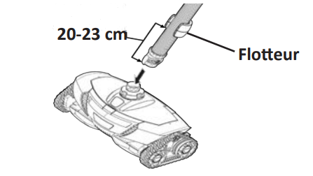 - Assurez-vous que le flotteur soit positionné à environ 20 à 23 cm du connecteur rapide.